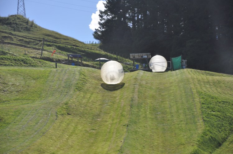 E a bobagem mais divertida da viagem foi descer um morro rolando dentro dessas bolas que aparecem na foto abaixo.