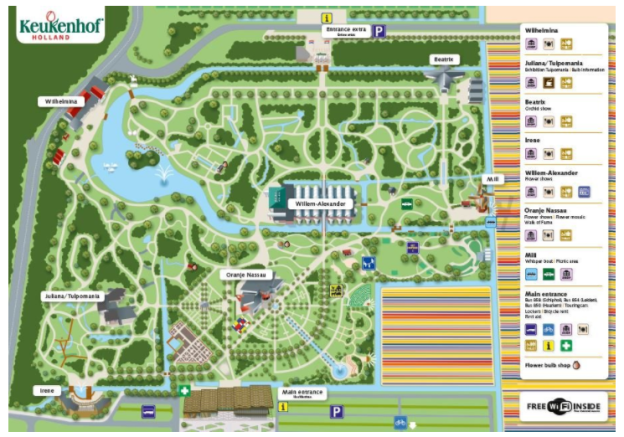 É obrigatório falar desse parque quando se fala de tulipas na Holanda. Ele existe como parque de exposições desde 1950 e tem 7 milhões de bulbos, fornecidos por 100 empresas, que todo ano exibem lá seus “catálogos”.