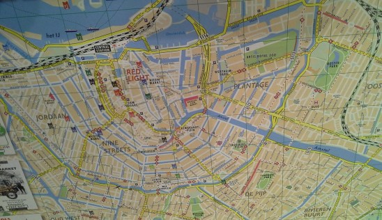 A parte de cima, onde está escrito Red Light, é o centrão de Amsterdam. Eu acho muito muvuca e evitaria me hospedar naquela área. Acho mais legal ficar nesse primeiro círculo ao redor, onde ficam Jordaan e Nine Streets.