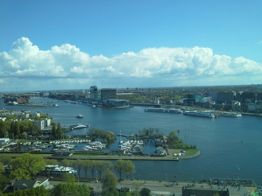 Nosso passeio no centro incluiu pegar o ferry gratuito na Estação Central e it até a Torre A’DAM, de onde se tem a vista panorâmica da cidade e da Estação.