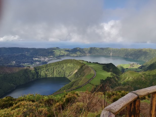 Pelo caminho, passamos pelo Miradouro da Candelária, que, na minha opinião, é o melhor lugar para ver a Lagoa Verde e a Lagoa Azul.