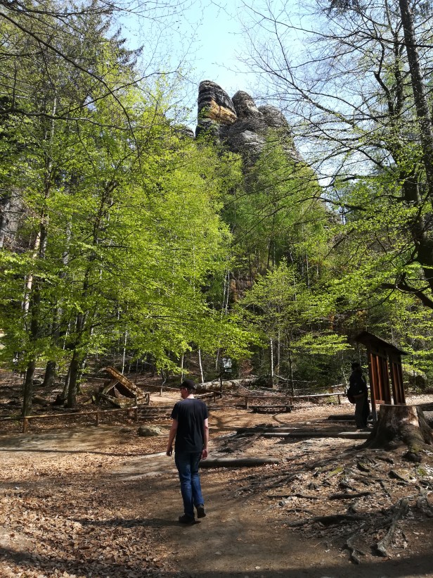 Mas, depois de subir na pedra, já estávamos tão satisfeitos com o passeio, que acabamos nem indo até até a outra montanha, Hohe Liebe. Pegamos um atalho que nos levou de volta até o estacionamento onde tínhamos deixado o carro.