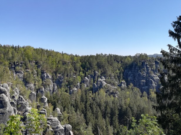 Depois entendi. É que o tal “Schrammsteinaussicht” é um lugar no alto de uma pedra que tem quase 400 metros de altura.
