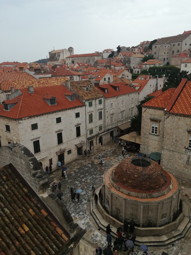 A primeira coisa que a gente vê lá do alto é a própria cidade antiga e sua avenida principal, a Stradun.
