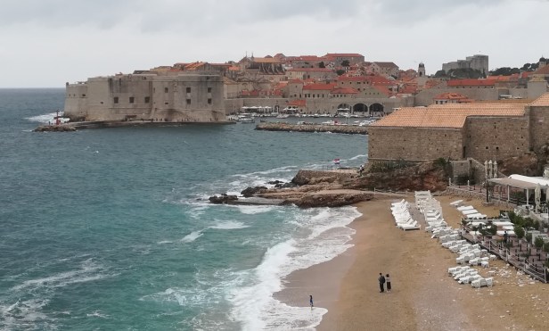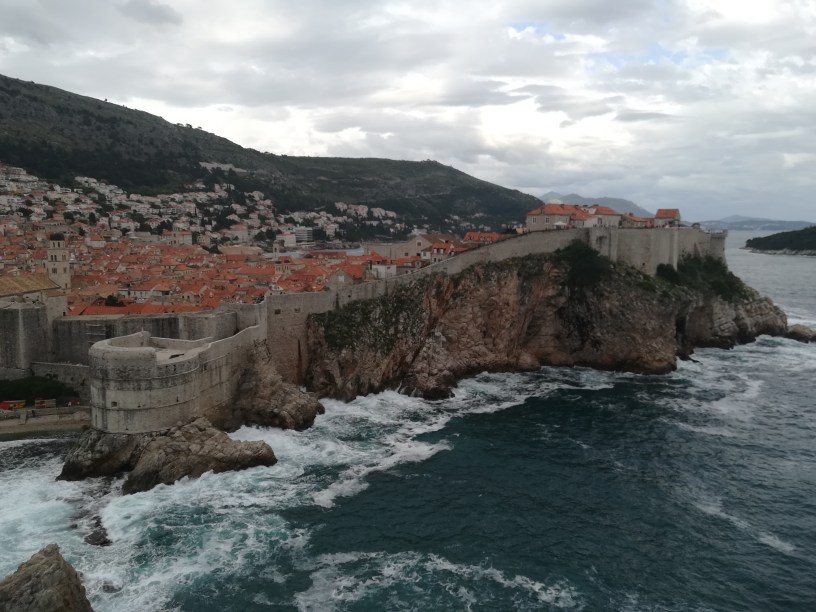 Chegar na cidade é impressionante. Quem pega o ônibus que liga o aeroporto à Dubrovnik e senta em uma das janelas atrás do motorista, vê, lá do alto da montanha, a cidade murada na beira do mar.