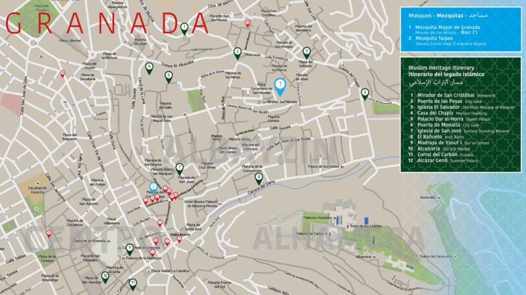 Nela fica o bairro Albaicín, desenvolvido pelos muçulmanos entre os séculos XI e XVI. O traçado de ruas curvas ainda é o mesmo daquele tempo.