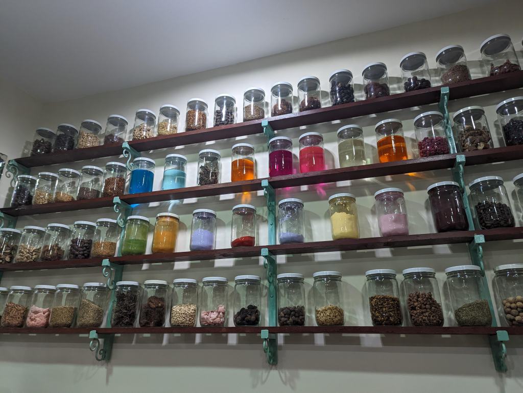 É uma atração turística: logo que a gente chega, é convidado a entrar numa sala cheia de vidros de ervas diferentes. E um funcionário da loja nos dá uma aula sobre as plantas e seus vários usos.