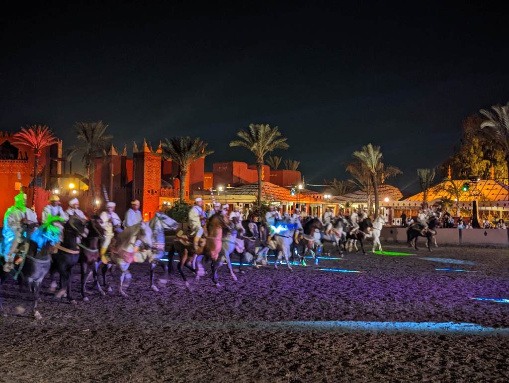 E, para finalizar, assiste a um show de berberes mostrando suas habilidade montando cavalos.