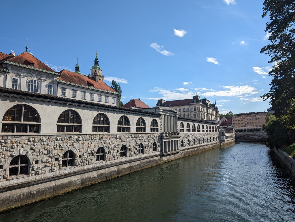 Primeiro, vou te levar para um passeio pela margem do rio Liublianica, da Ponte do Dragão (Zmajski most) à Ponte de Santiago (Šentjakobski most). Essa é a cidade medieval.