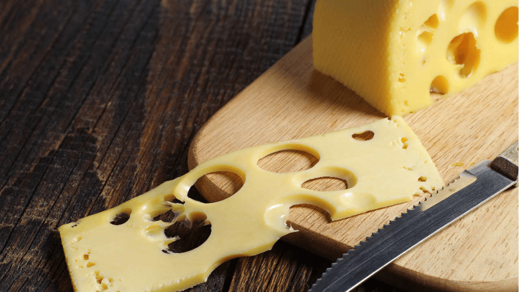 Falar em queijo suíço é pensar em queijo com furinhos. Tipo esse: